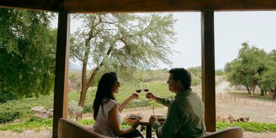 El encuentro es en Galería de las Viñas, un antiguo puesto de adobe con vistas al valle, rodeado de cardones y viñedos. Su galería brinda sombra y resguarda el patio de fuegos, donde la parrilla y el horno de barro realzan los sabores del norte argentino. Al finalizar, se pueden adquirir vinos orgánicos y artesanías locales.
